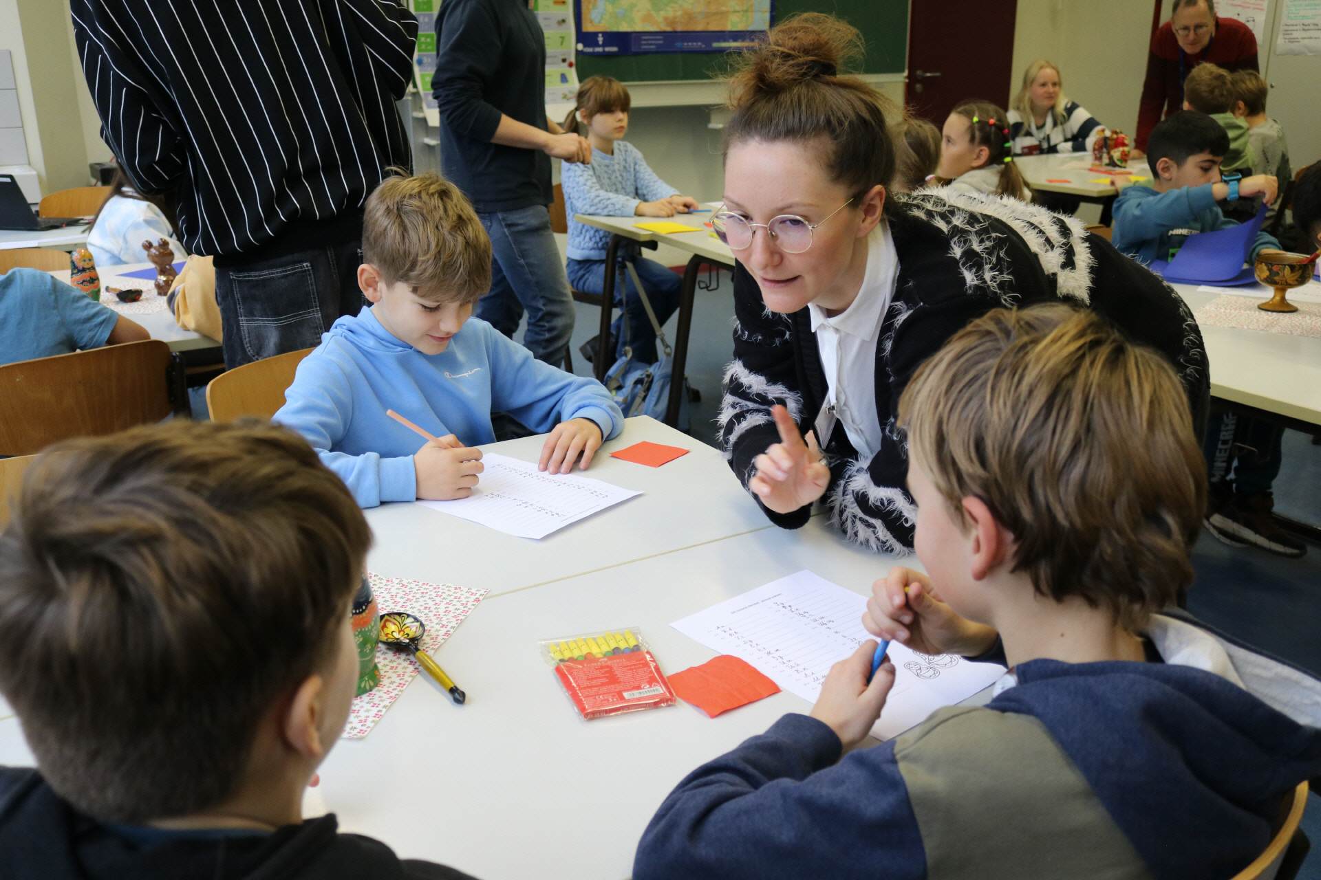 Im Fach Sport standen verschiedene Spiele wie Floorball und Zombieball auf dem Programm, bei denen die Kinder sich austoben konnten. Im Russischunterricht wurden Namensschilder mit kyrillischen Buchstaben gestaltet. Besonders abenteuerlich ging es im Fach Mathematik zu: Hier begaben sich die Grundschülerinnen und Grundschüler auf eine mathematische Rallye durch das Schulhaus, um den Schatz des Christian Wolff zu finden.