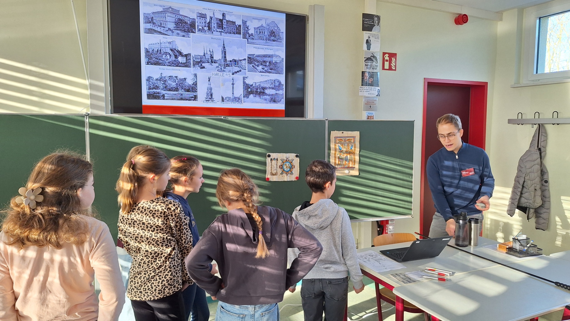 Nach einer kurzen Eröffnungsrede durch unseren Schulleiter Herrn Slowig startete der Schnupperunterricht in den Fächern Französisch, Geschichte und Naturwissenschaften. In den Naturwissenschaften standen spannende Experimente rund um das Element Wasser auf dem Programm. Im Französischunterricht konnten die Kinder erste Dialoge auf Französisch ausprobieren und sogar eine eigene Flagge basteln. Im Fach Geschichte wurden verschiedene Quellen, wie zum Beispiel alte Postkarten von Halle, untersucht und die Schülerinnen und Schüler durften mit Feuersteinen und Feuerstahl ein Feuer wie im Mittelalter entzünden.
