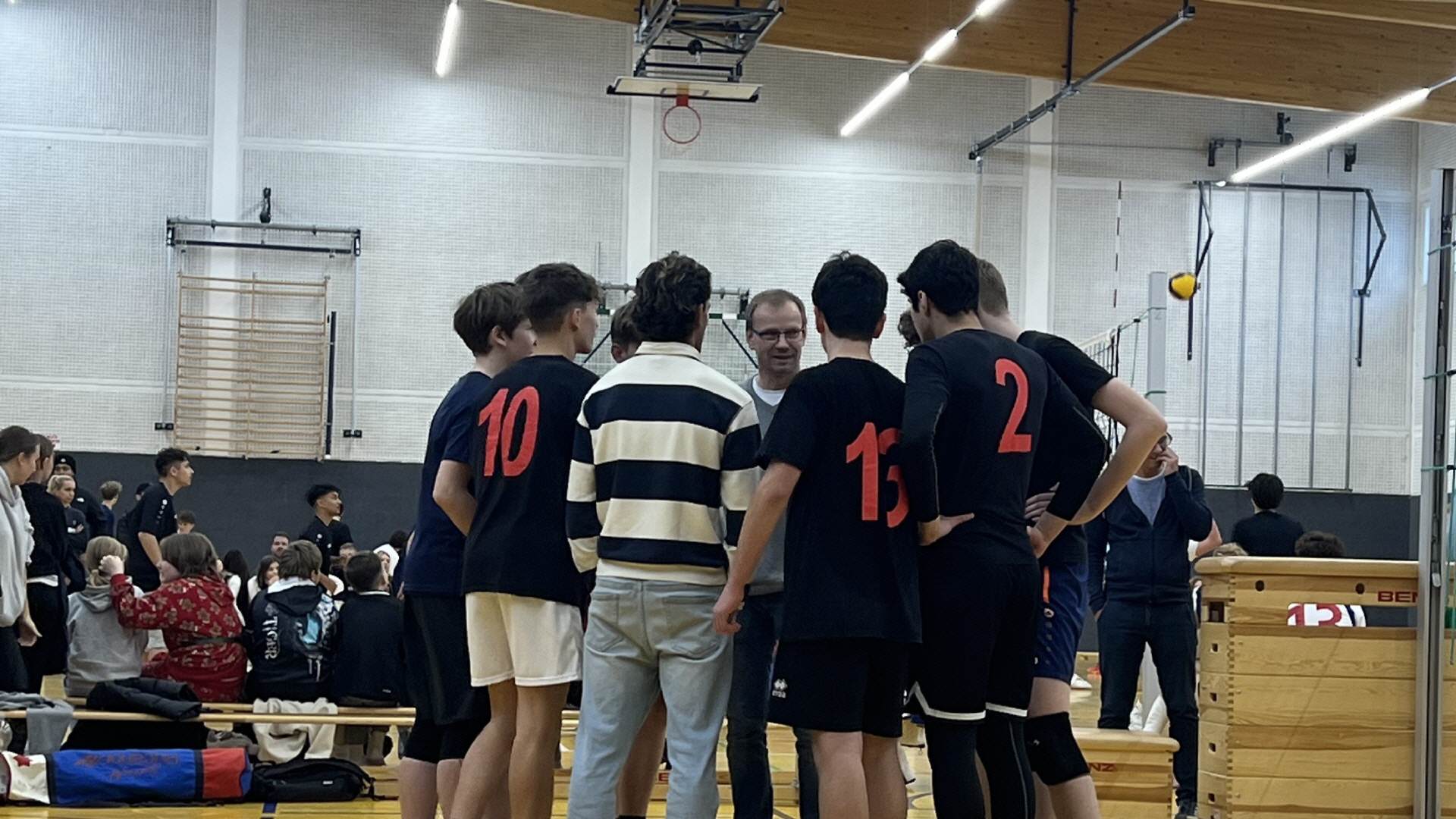 Nach dem 3. Platz im Landesfinale des Vorjahres trat unser stark verjüngtes Team in große Fußstapfen. Im Stadtfinale im November war der langjährige freundschaftlich verbundene Rivale vom Südstadt-Gymnasium aufgrund der erfahreneren Einzelspieler beim Turnier von immerhin acht Mannschaften leicht favorisiert. Doch unser Team um den überragenden Kapitän Julius Wiesinger (Klasse 9b), das feine Zuspielhändchen Narek Gasparyan (9c) sowie den unorthodoxen, aber wirkungsvollen Mittelangreifer Torben Birke (10c) erwischte einen Sahne-Tag und bestritt alle Spiele erfolgreich und ohne Satzverlust. Insbesondere das Finale gegen das Südstadt-Gymnasium wurde mit einer Abwehrleistung der Extraklasse überzeugend gewonnen. Damit verbunden war die Qualifikation für das Regionalfinale Sachsen-Anhalt-Süd.
