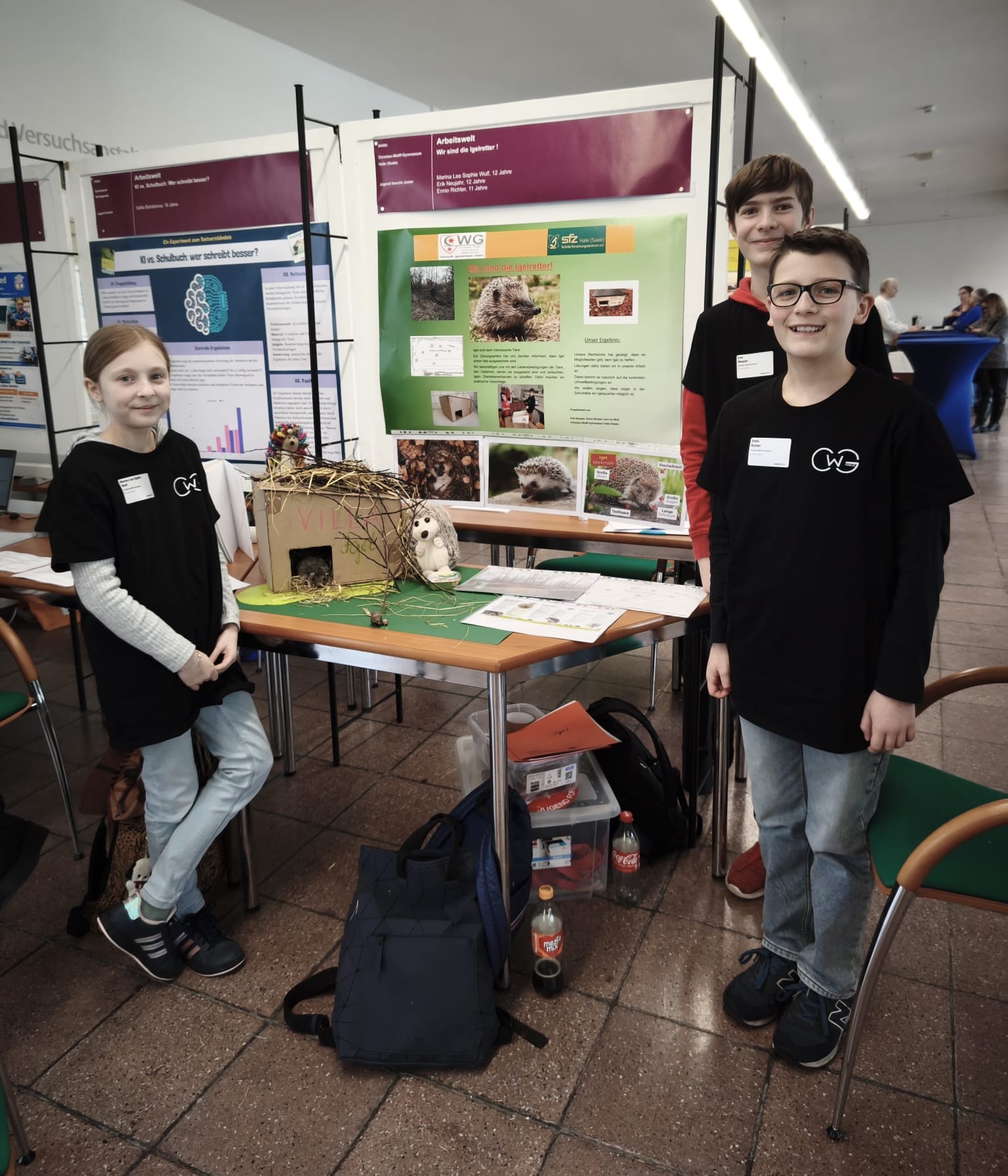 Bereits am 17. Februar 2026 beim Regionalwettbewerb in Halle belegten Ennio, Erik und Lea aus der 6a den zweiten Platz mit ihrem Projekt „Wir sind die Igelretter“.