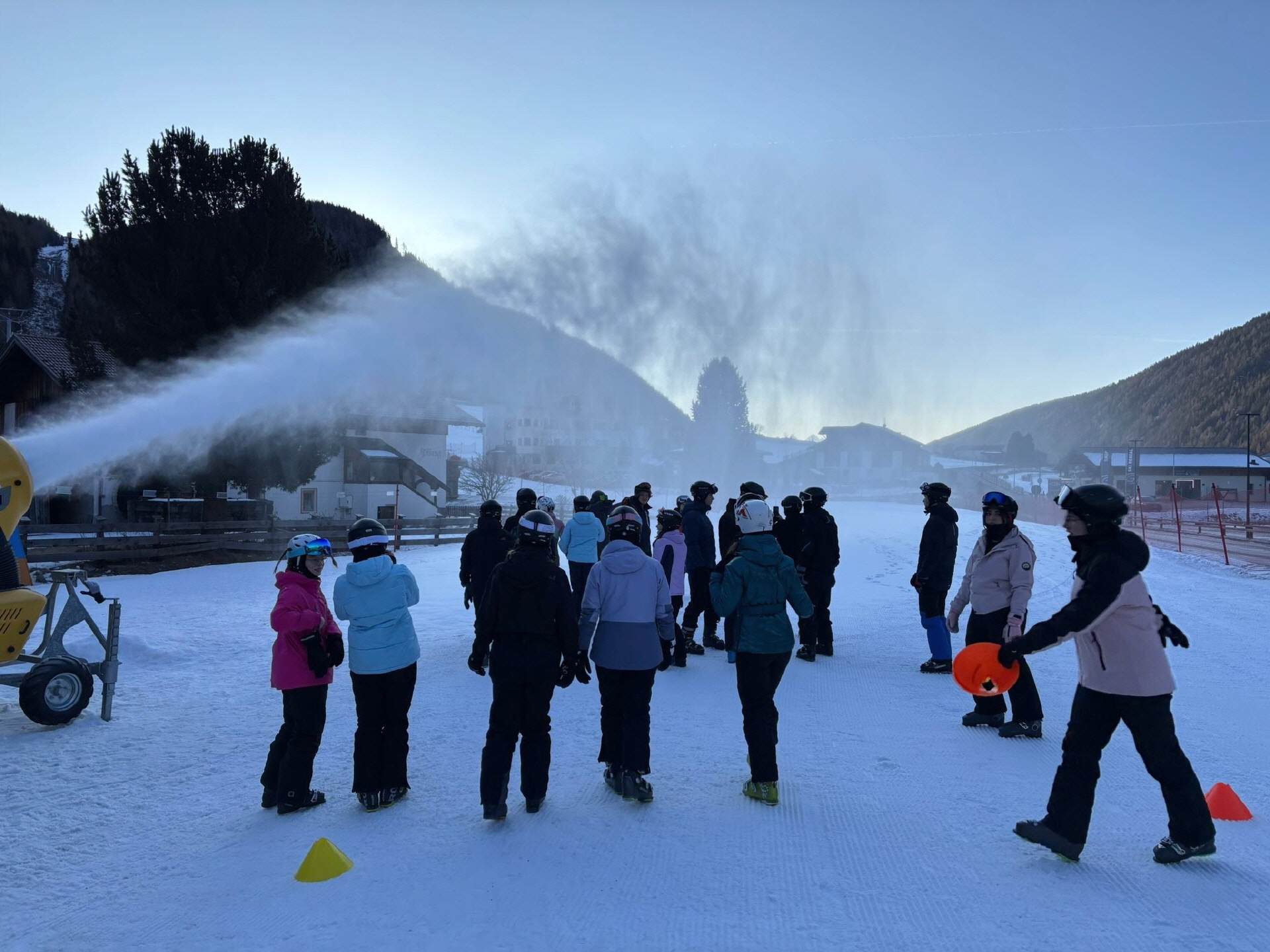 Die Woche vom 17. bis zum 23. Januar 2026 verbrachte der Skikurs des Abiturjahrgangs 2027 im Skigebiet Gitschberg-Jochtal, in Südtirol. Am ersten Tag fuhren wir schon früh los, um möglichst früh an unserem Ziel anzukommen. Begleitet hat uns (Ur-)Opa Uwe, der uns sicher durch halb Deutschland und den Alpen, bis nach Natz zur Pension Rademüller gefahren hat. Morgens frühstückten wir immer gemeinsam, um danach mit dem Bus ins Skigebiet zu fahren. Dort teilten wir uns in Anfänger- (keine/kaum Skierfahrung), Fortgeschrittene- (etwas Skierfahrung) und Profi- (viel Skierfahrung) Gruppen auf, um besser an unserer Technik arbeiten zu können. Mittags kamen wir meist im Tal in einem Restaurant zusammen, um uns nach einem anstrengenden Vormittag ein deftiges Mittagessen gönnen zu können. Dabei hatten wir stets einen Blick auf die wunderschönen Alpen. Anschließend gingen wir wieder auf die Pisten, um weiter zu lernen bzw. unsere Technik zu festigen. Gegen 16 Uhr fuhren wir dann immer zurück zur Pension, um dort ein leckeres Abendessen zu verspeisen. Danach gab es erstmalig eine kleine Theorieeinheit, bei der wir auch Dinge gelernt haben, die über das Skifahren hinaus gehen, wie z. B. Materialkunde, Erste Hilfe und Bewegungslehre. Wohlgenährt und wohlgesinnt arbeiteten wir abends an unseren schülergeleiteten Erwärmungen oder ließen den Abend mit einigen Partien Werwolf ausklingen. Dabei begaben wir uns mit viel Fantasie in die Flächen der Papenburger Kiesgrube sowie in die Flure des CWG's. Das stärkte unser Miteinander sehr. Im Verlauf der Woche machten vor allem die Anfänger große Fortschritte. In einem abschließenden Rennen waren einige sogar schneller als die Fortgeschrittene und Profis. Wir haben die Woche am letzten Tag abgeschlossen mit einer (freiwilligen) gemeinsamen roten Talabfahrt, Hamsterkäufen von Mojito-Limonade sowie einem kleine "Kino"-Abend. Dort schauten wir uns Videos von unseren selbstentworfenen Ski-Choreos an. Außerdem schrieben wir einen kleinen Test, bei dem wir unter anderen über die Zukunftsfähigkeit dieser Skifahrt diskutierten. Abschließend spielten wir "Schlag den Wintersportler", wobei die Anfänger gegen die Fortgeschrittenen und Profis in verschiedenen Challenges antraten. Trotz der schönen Woche waren wir alle auch ein wenig froh, am letzten Tag endlich wieder in Halle anzukommen.
