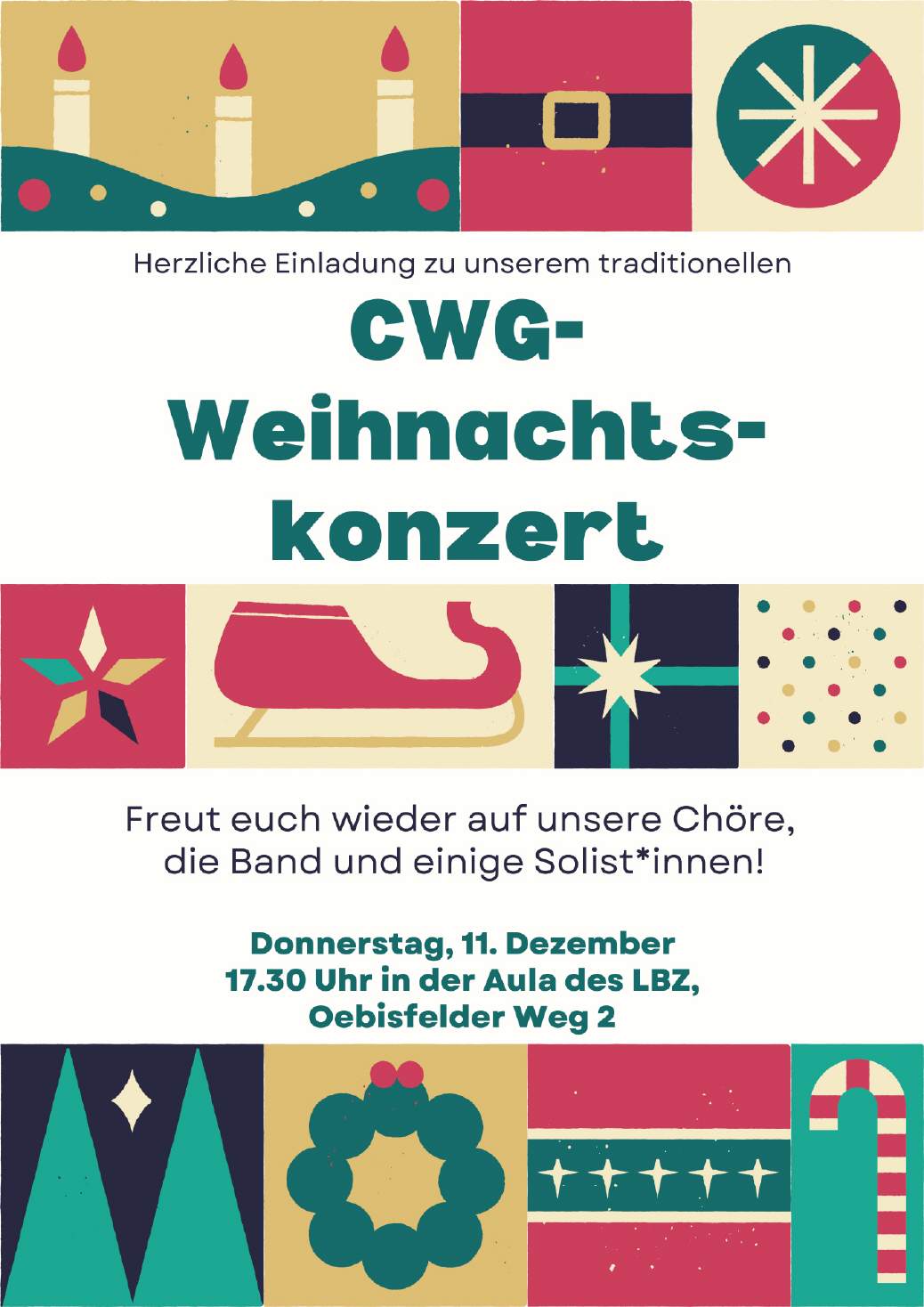 Sie sind hier: Startseite » Aktuelles » Termine Weihnachtskonzert am 11.12.2025 CWG-Volleyball-Turnier am 20.12.2025 Tag der offenen Tür am 24.1.2026